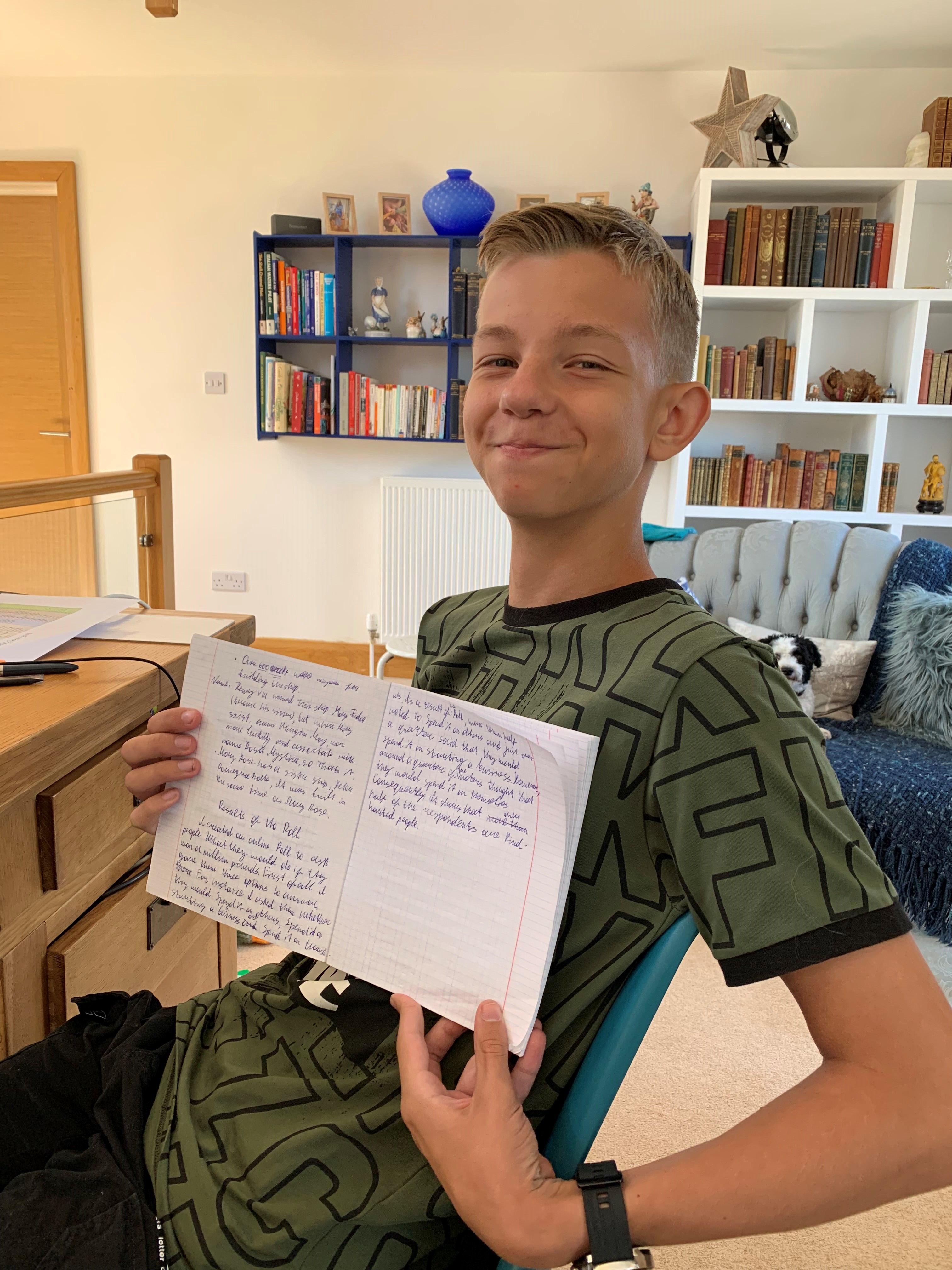 He is making rapid progress in English and enjoying his new British school, as much as his activity-packed school holidays with his hosts.